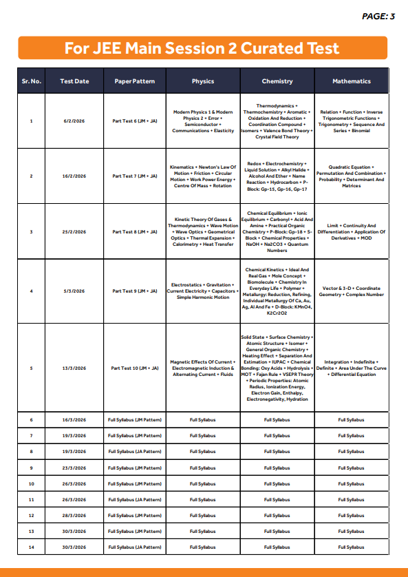 | Part Test-3 (25-02-2026) | |||